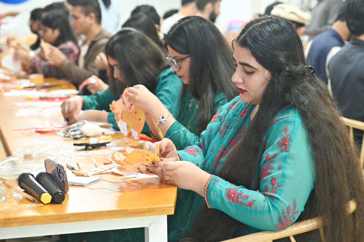 花灯DIY环节成为全场亮点,一只只灵动可爱的小兔子灯逐渐成型。灯光亮起时,现场洋溢着创意与欢乐的氛围,这些手工灯也成为了大家珍藏的中秋记忆。活动尾声,师生同唱经典诗词改编歌曲《明月几时有》,品尝中秋月饼。在团圆的氛围中,中外文化的交融之美尽显。