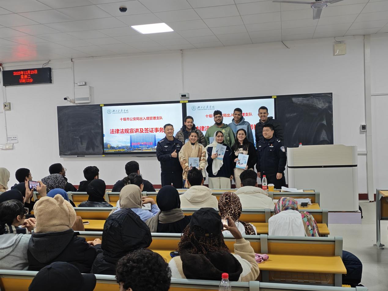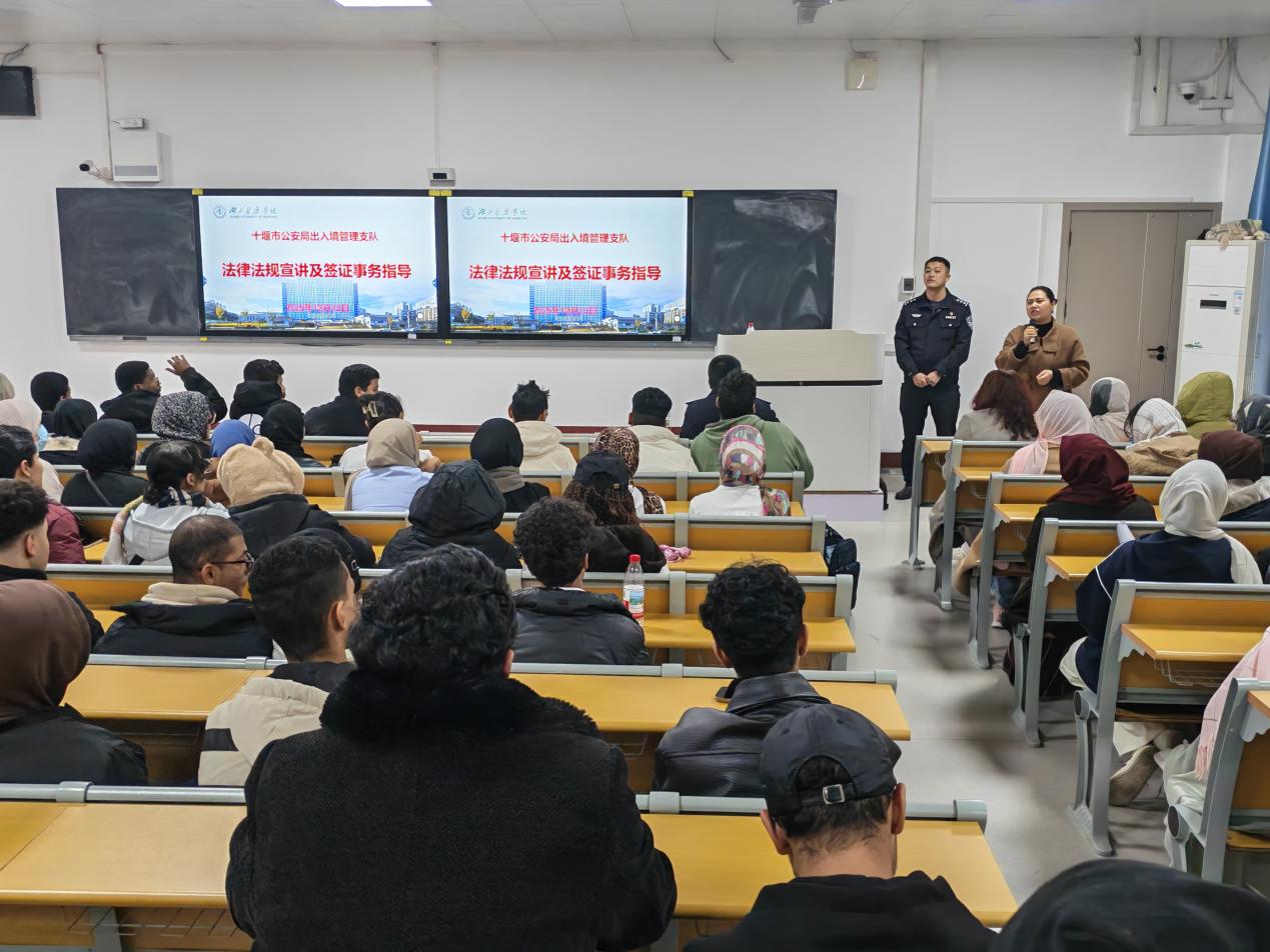本网讯(通讯员 董丹妮)为增强留学生法治意识,保障其在华学习生活安全有序,国际教育学院特邀十堰市公安局出入境管理支队,于12月23日下午3点在3301教室开展法律法规宣讲暨签证事务指导会,全体留学生新生参会。